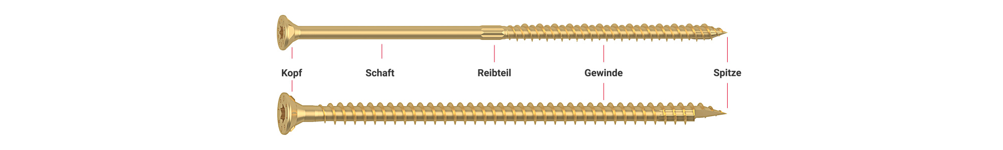 RAPID® Teilgewindeschrauben ermöglichen eine stabile Verbindung zweier Bauteile. Das Gewinde muss hierbei vollständig im unteren Bauteil (2) eingebettet sein. Teilgewindeschrauben ziehen das obere Bauteil (1) während des Einschraubvorgangs fest auf das untere Bauteil (2). Bei axialer Belastung sind das Durchziehen des Kopfes und das Herausziehen des Gewindes (Ausziehen) zu berücksichtigen.